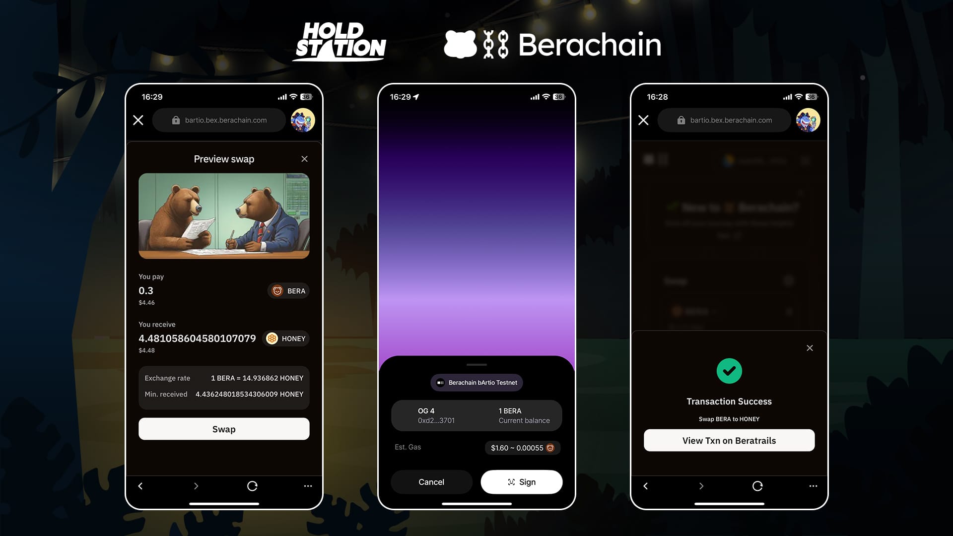 • Task: Swap BERA tokens on BEX, Berachain’s native DEX.