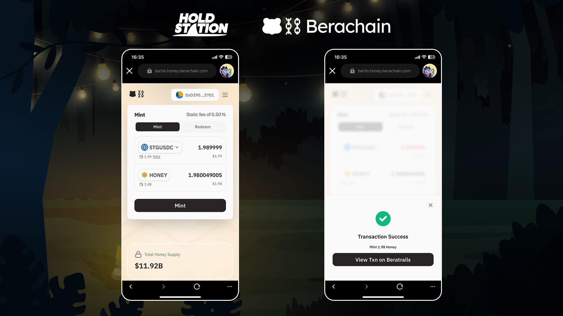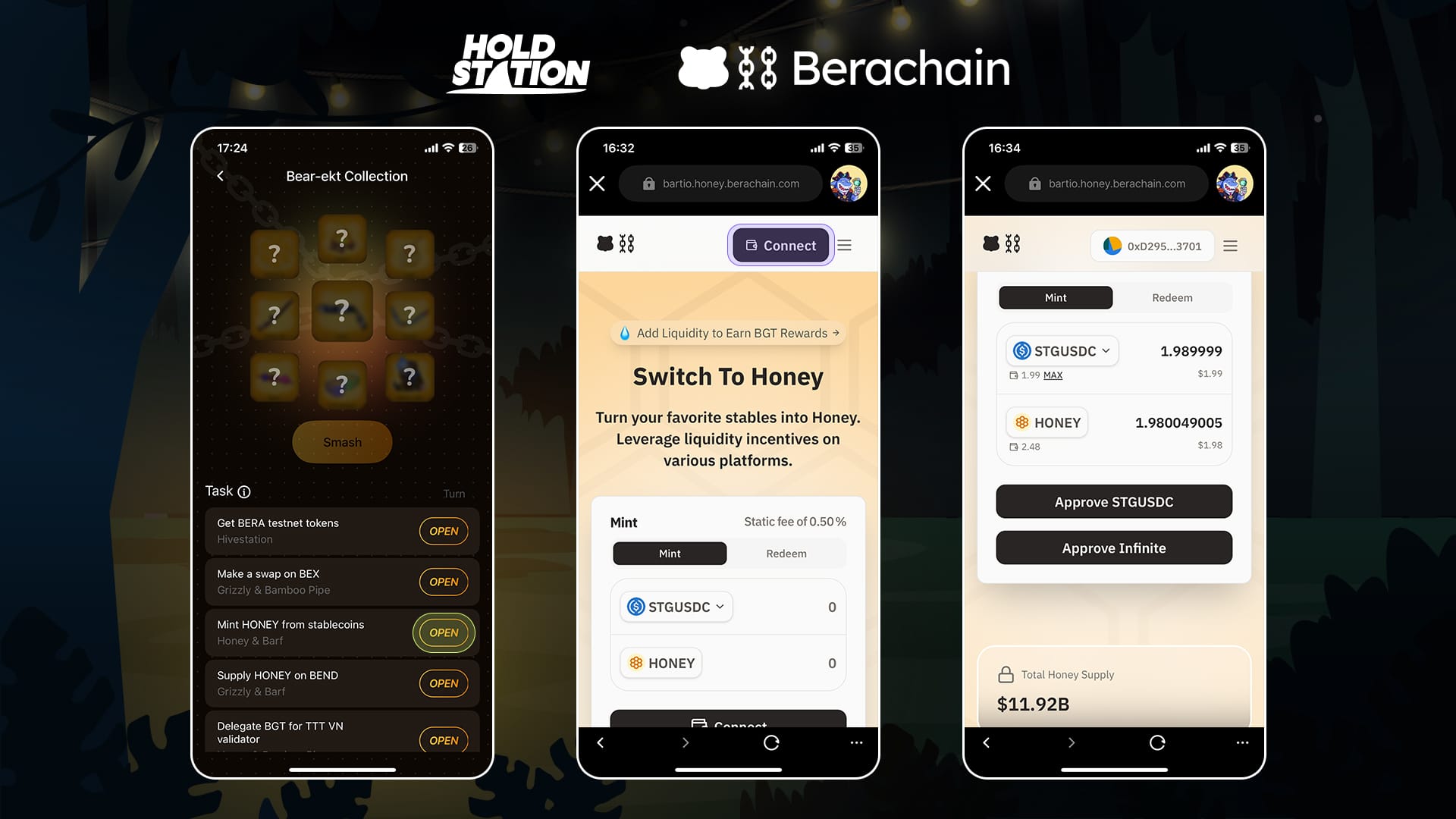 • Task: Mint HONEY using stablecoins on Berachain's Honey.