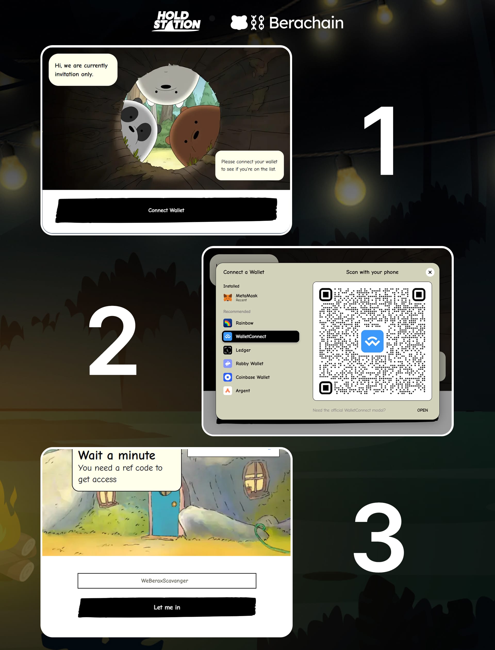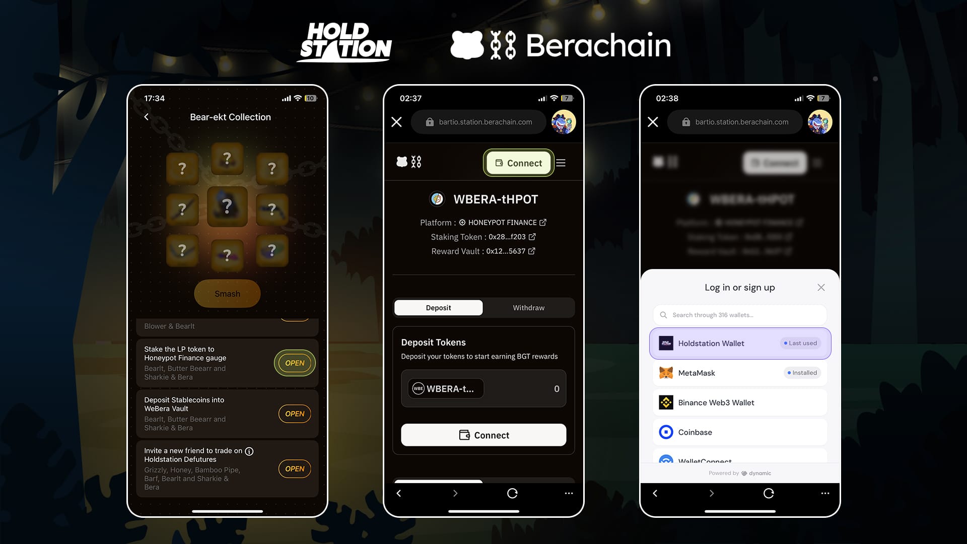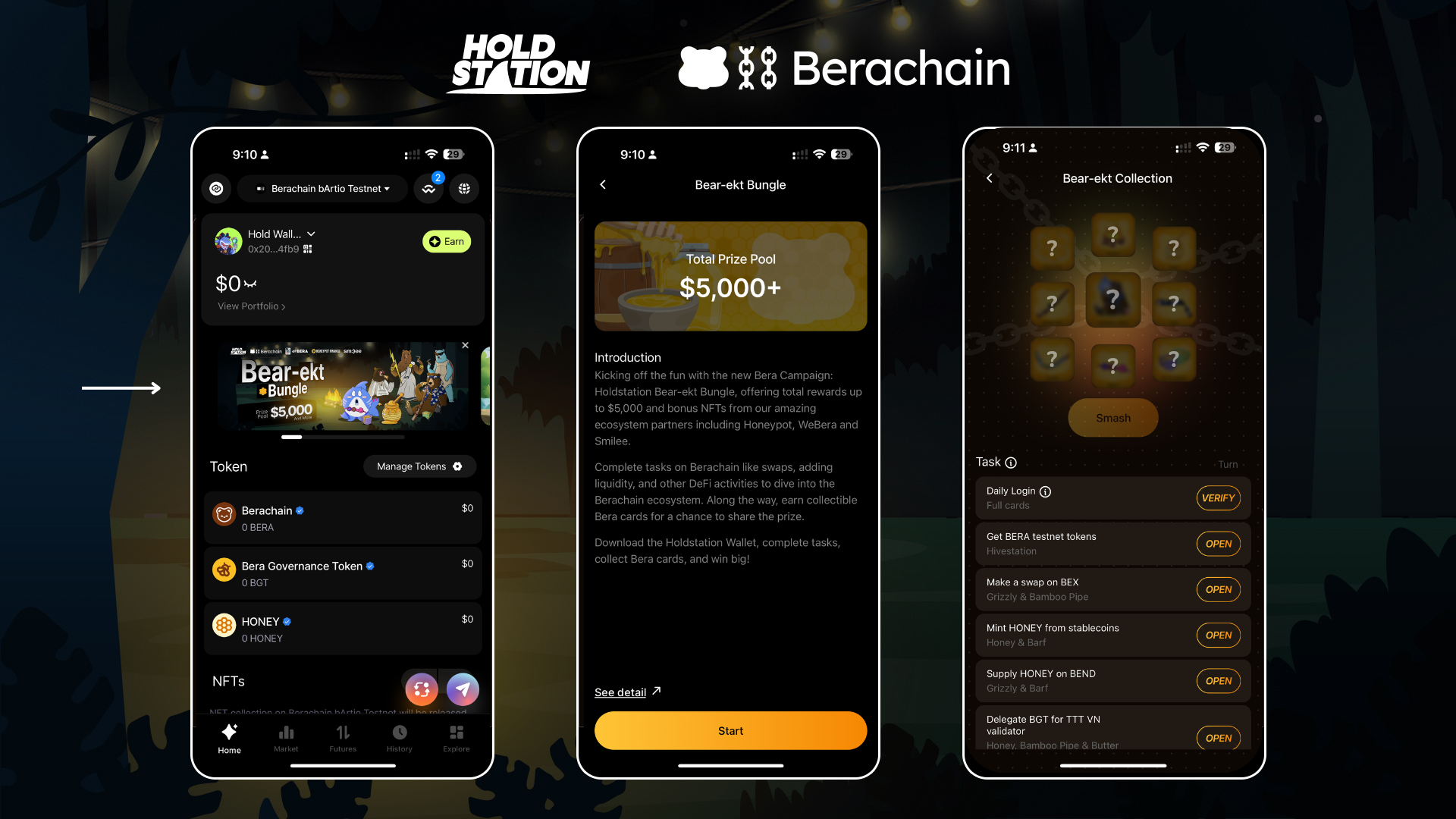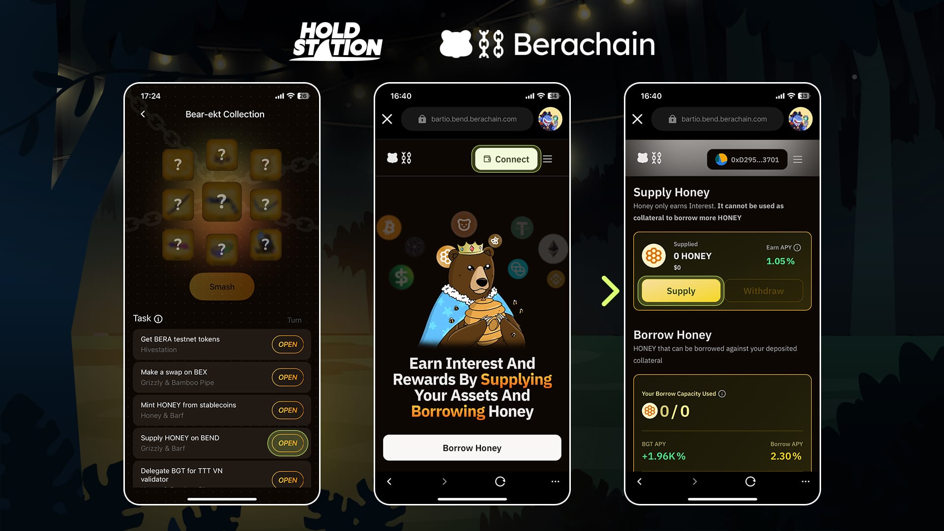 • Open the Holdstation Wallet app and log in daily on 'Bear-ekt Bungle'.