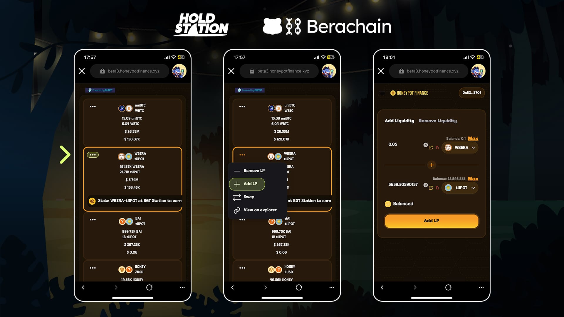Add liquidity to the WBERA-tHPOT pool on Honeypot Finance to earn LP tokens and unlock more cards.