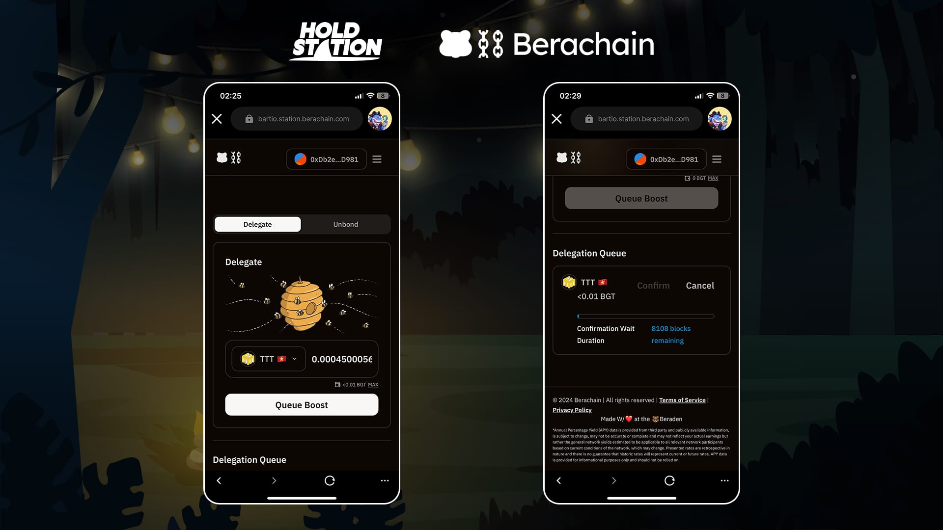 Participate in on-chain activities ( add liquidity, delegate, etc.) within the Berachain ecosystem to accumulate BGT tokens.