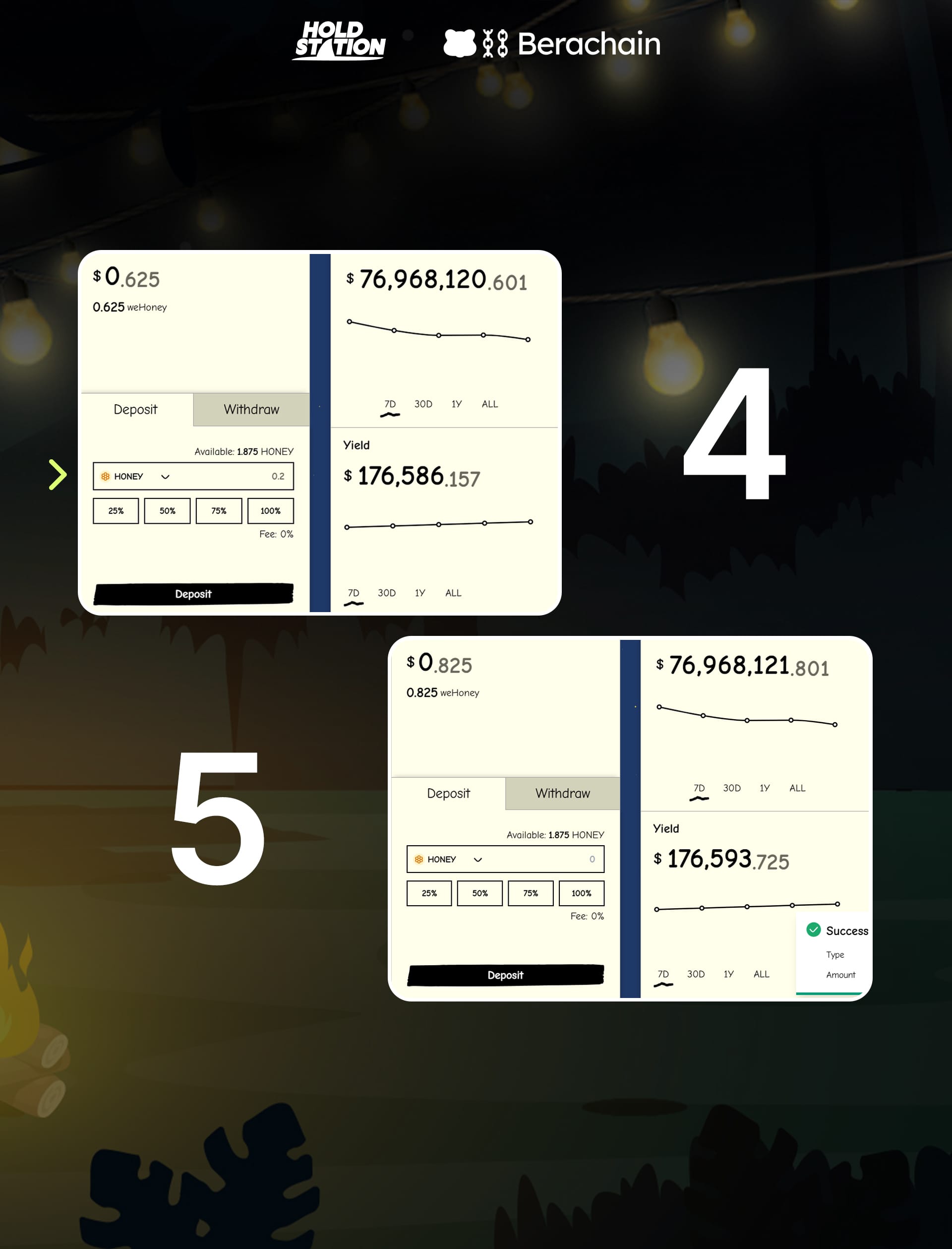 • Task: Deposit stablecoins like $HONEY, $USDT, or $USDC into the WeBera Vault.