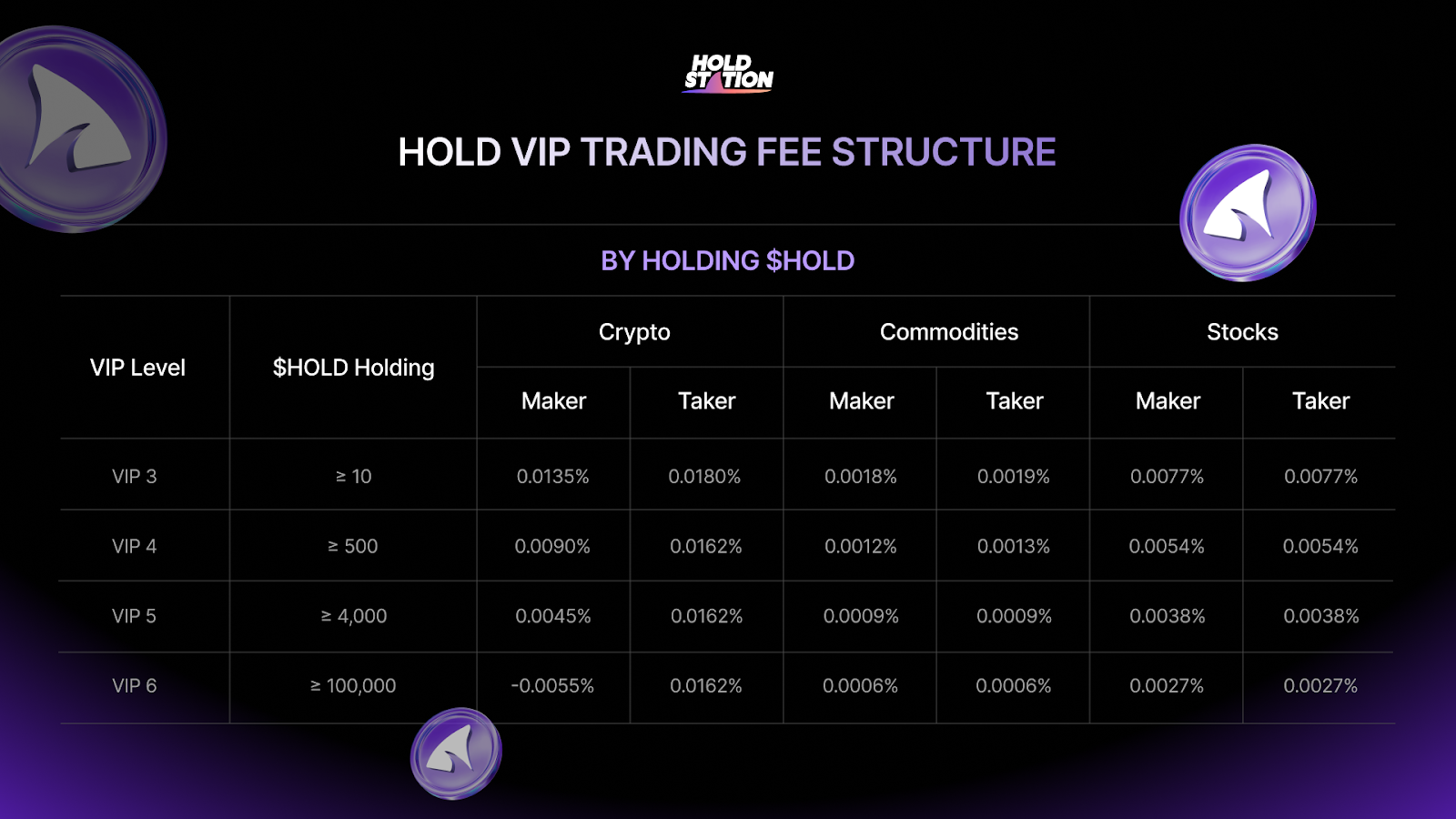 HOLD holders in Holdstation Wallet automatically receive progressive fee discounts based on their holding amount.