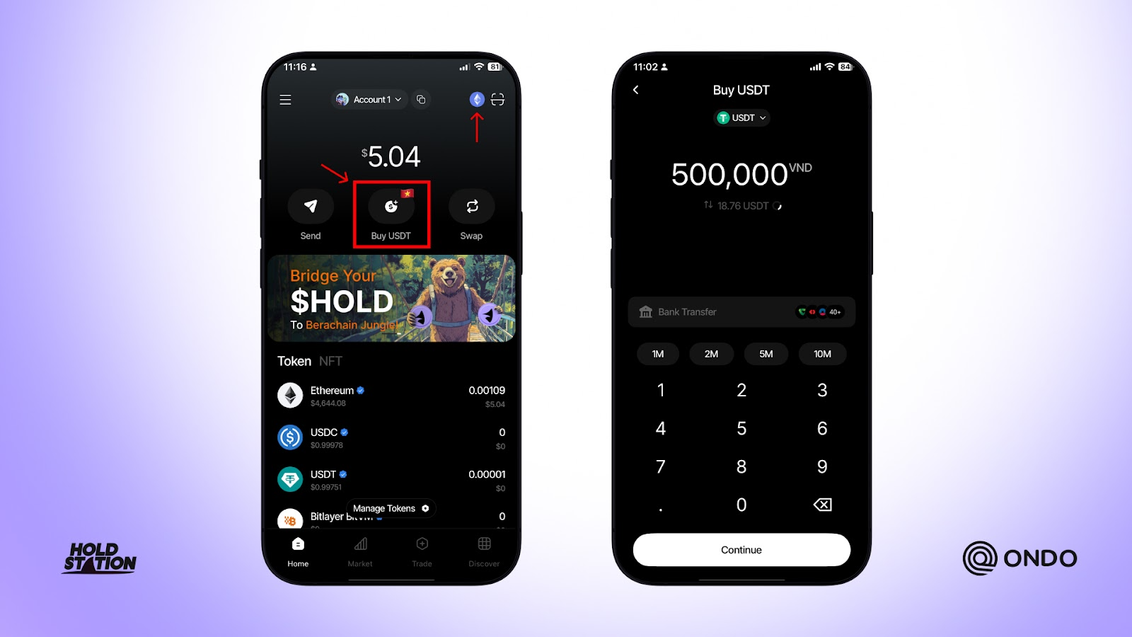 Tutorial on how to buy USDT with VND on Holdstation App: https://x.com/HoldstationW/status/1958060426551529727
