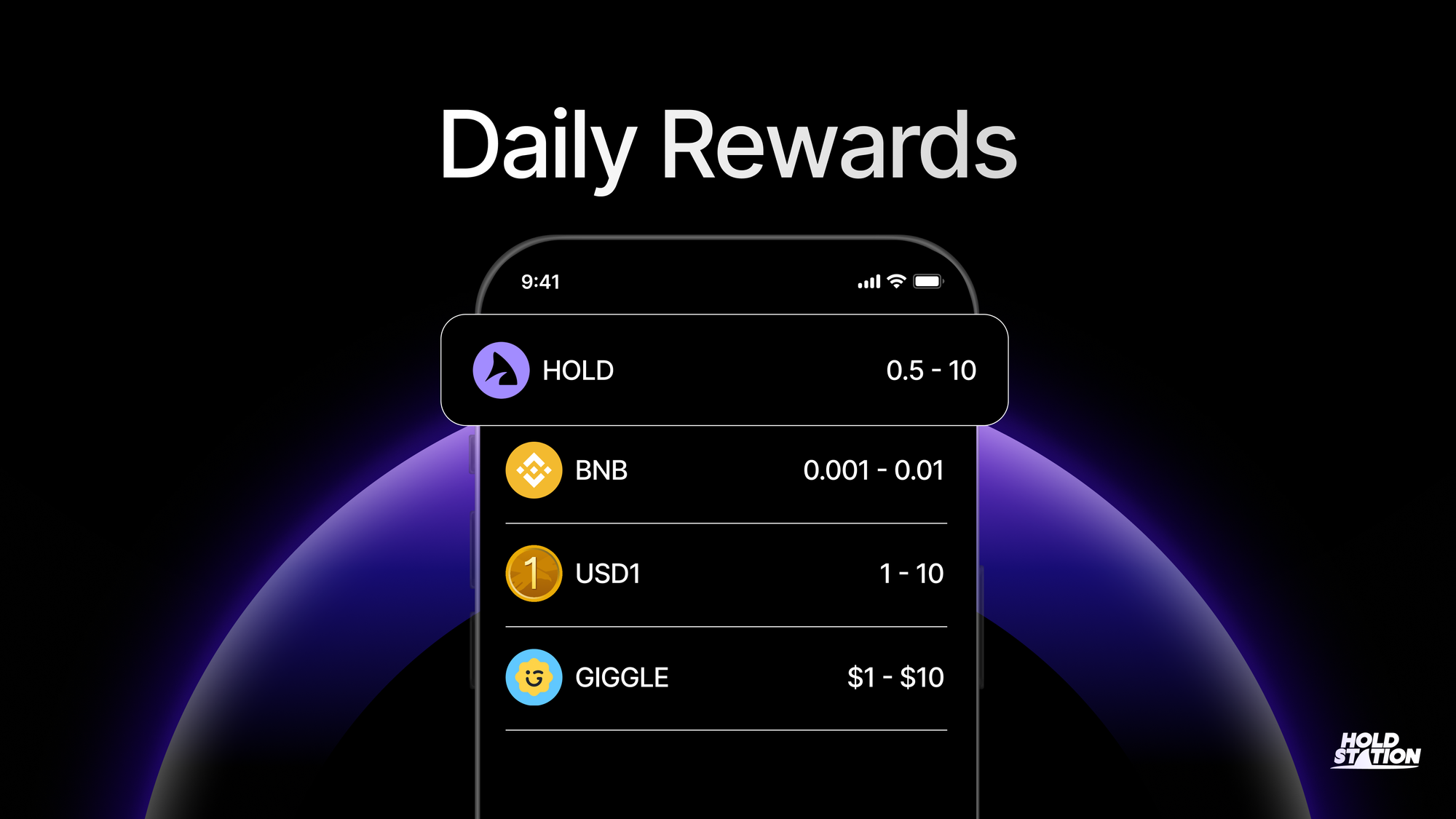Every qualifying user has a chance to receive random rewards daily, publicly announced and sent directly to your Holdstation non-custodial wallet. Rewards are distributed based on the midnight snapshot, ensuring fairness and transparency. Here's what you could win: