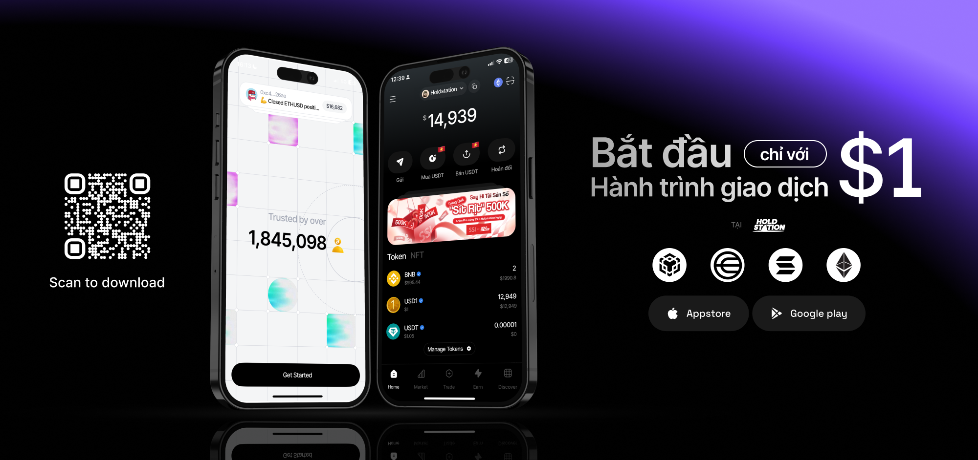Ví Holdstation là cổng kết nối thị trường Tài Sản Số và truyền thống, từ tạo ví, nạp VND/USDT, giao dịch đòn bẩy DeFutures, đến affiliate. Với bảo mật non-custodial và tiện ích DeFi, bạn có thể bắt đầu dễ dàng. Tải ngay và khám phá!