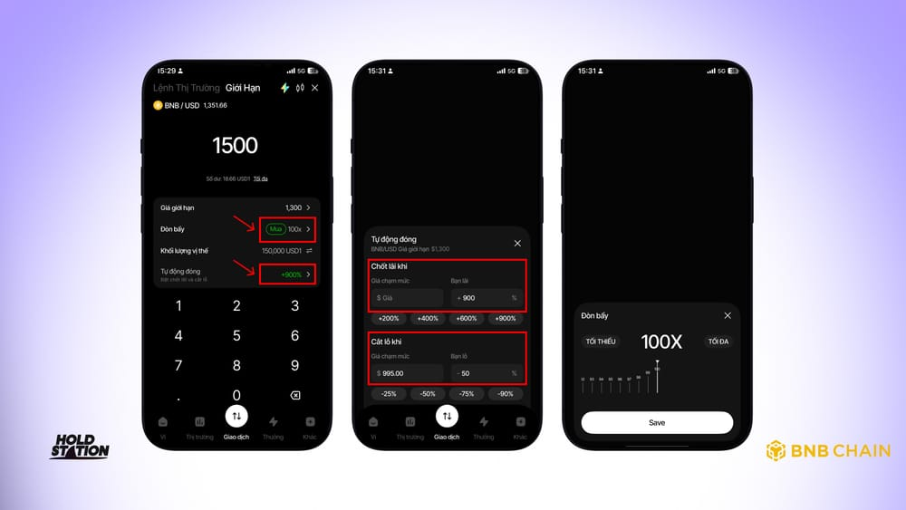 Hướng dẫn từng bước cách giao dịch đòn bẩy trên Holdstation DeFutures