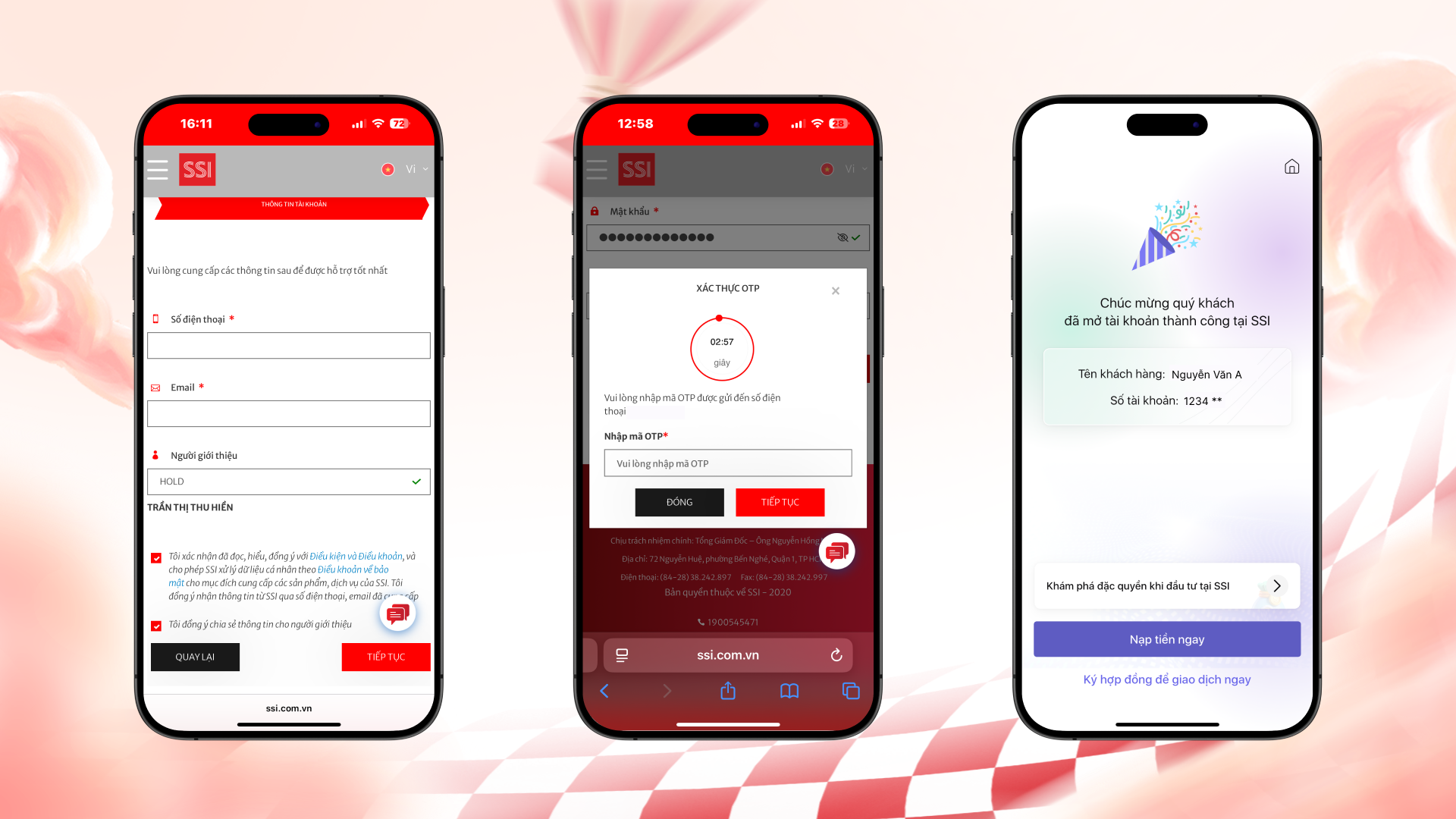 - Số điện thoại sử dụng tham gia sự kiện phải trùng với số điện thoại đăng kí tài khoản SSI