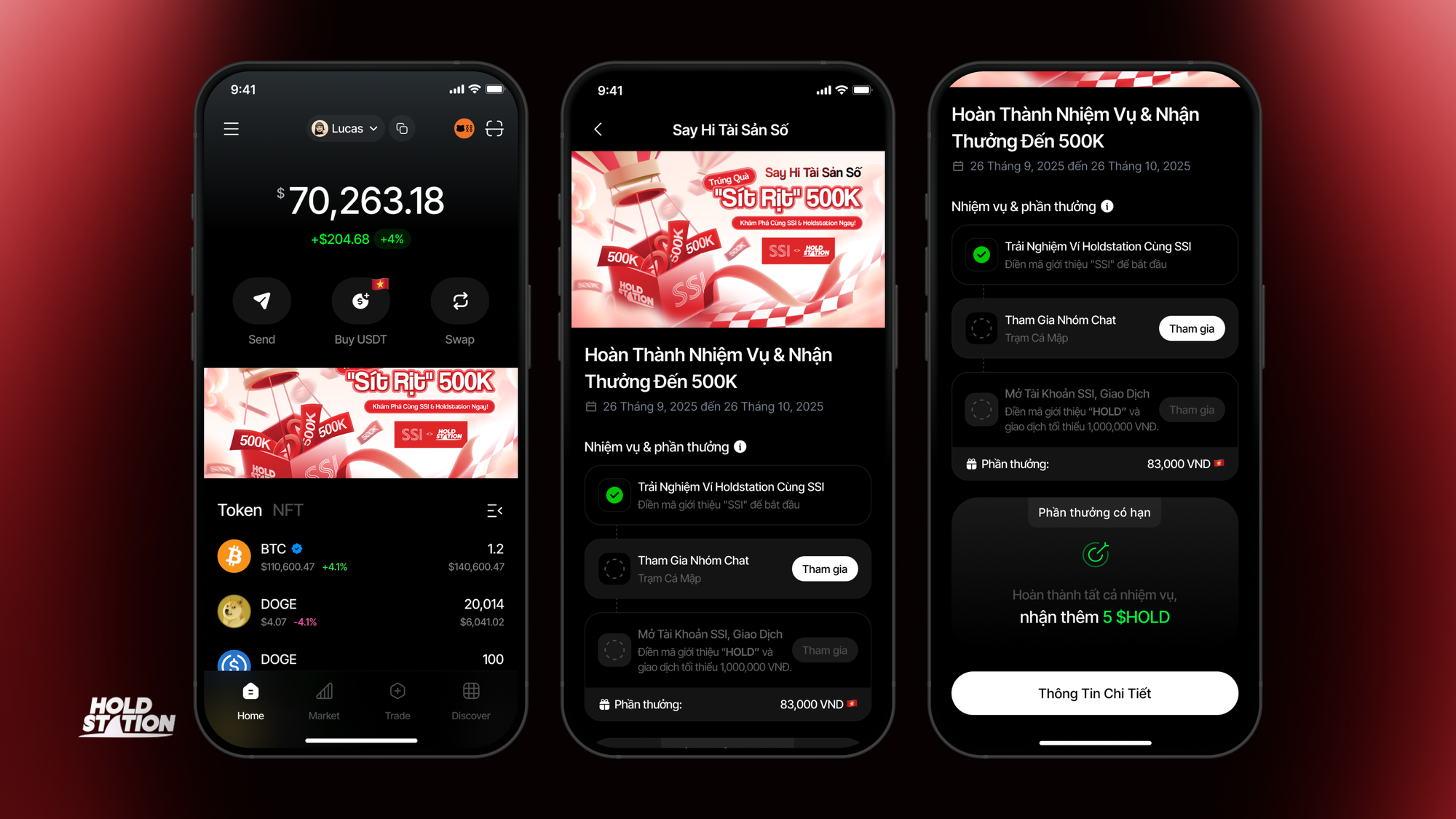 Tổng giải thưởng: Lên đến 500.000 VNĐ / người (gồm thưởng VNĐ từ SSI + thưởng tài sản số từ Holdstation)