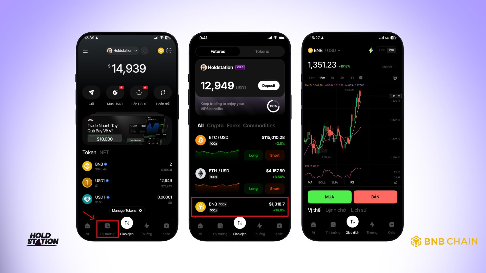 - Mở mục "Thị trường" trong ứng dụng Holdstation