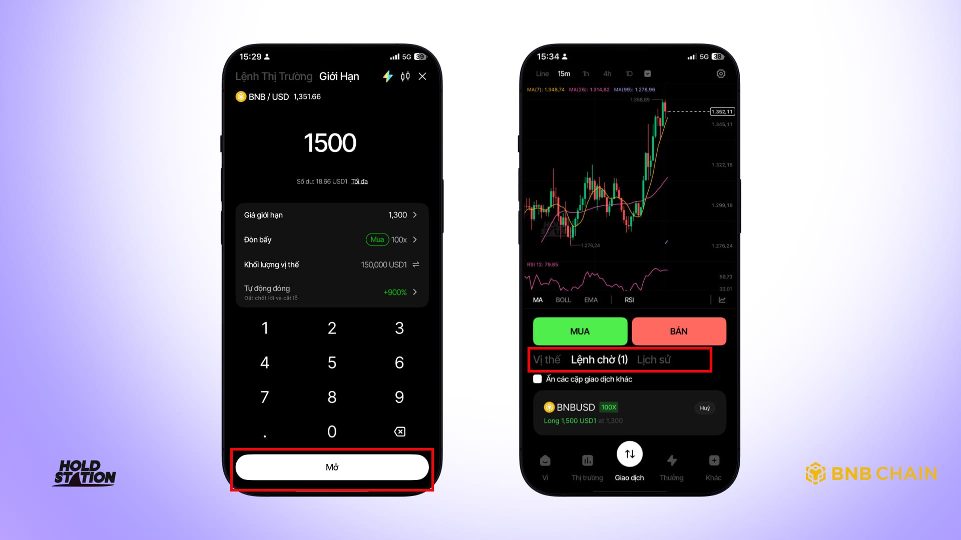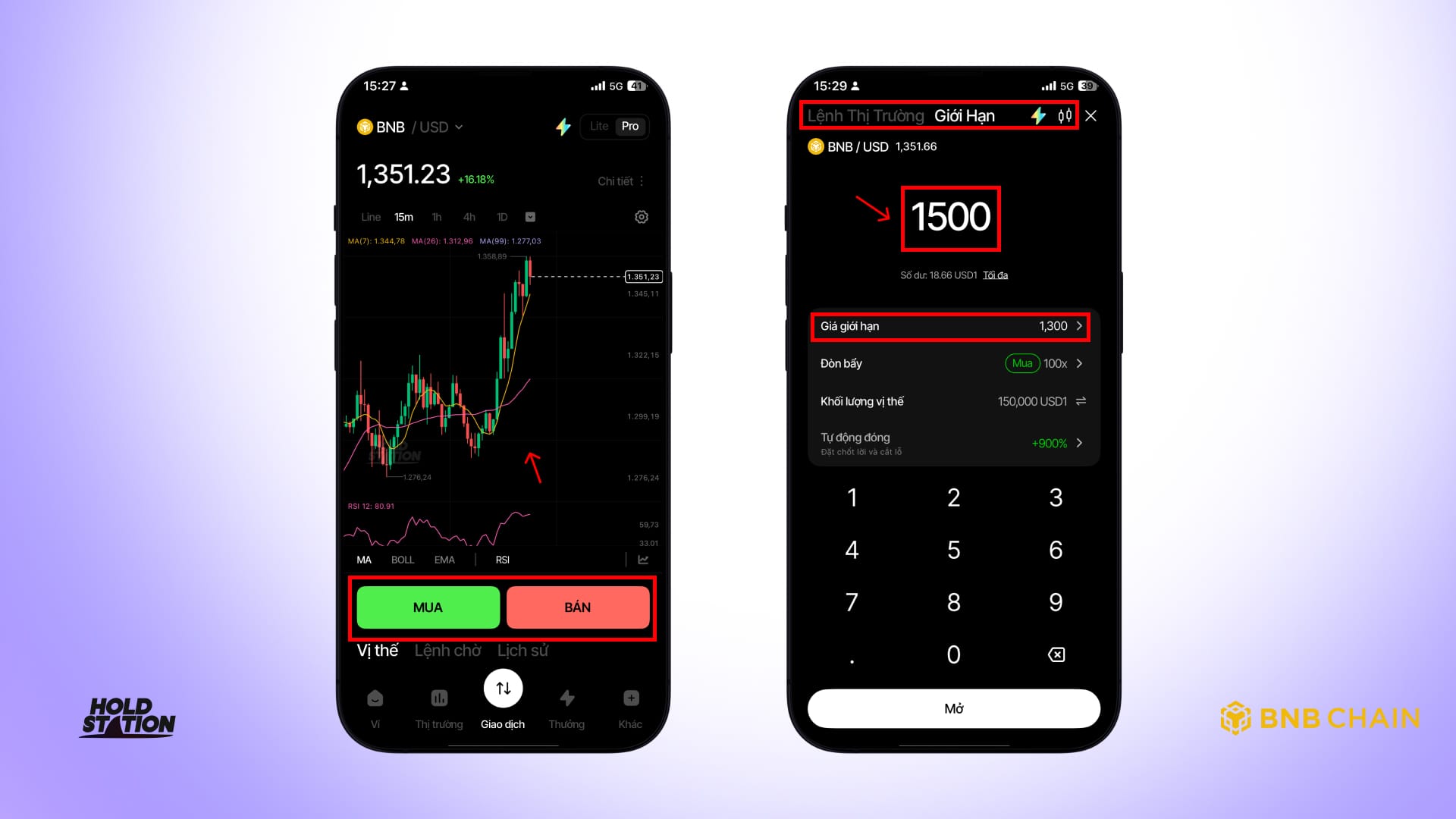 Hướng dẫn từng bước cách giao dịch đòn bẩy trên Holdstation DeFutures. Từ mua bán USD1 bằn VNĐ đến đòn bẩy 100x và đa dạng loại tài sản