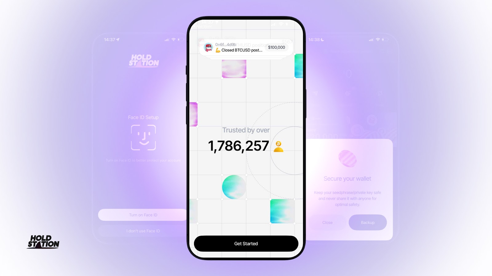 - Ví Holdstation: Tải ứng dụng di động (iOS/Android) và thiết lập ví với cụm từ 12 ký tự