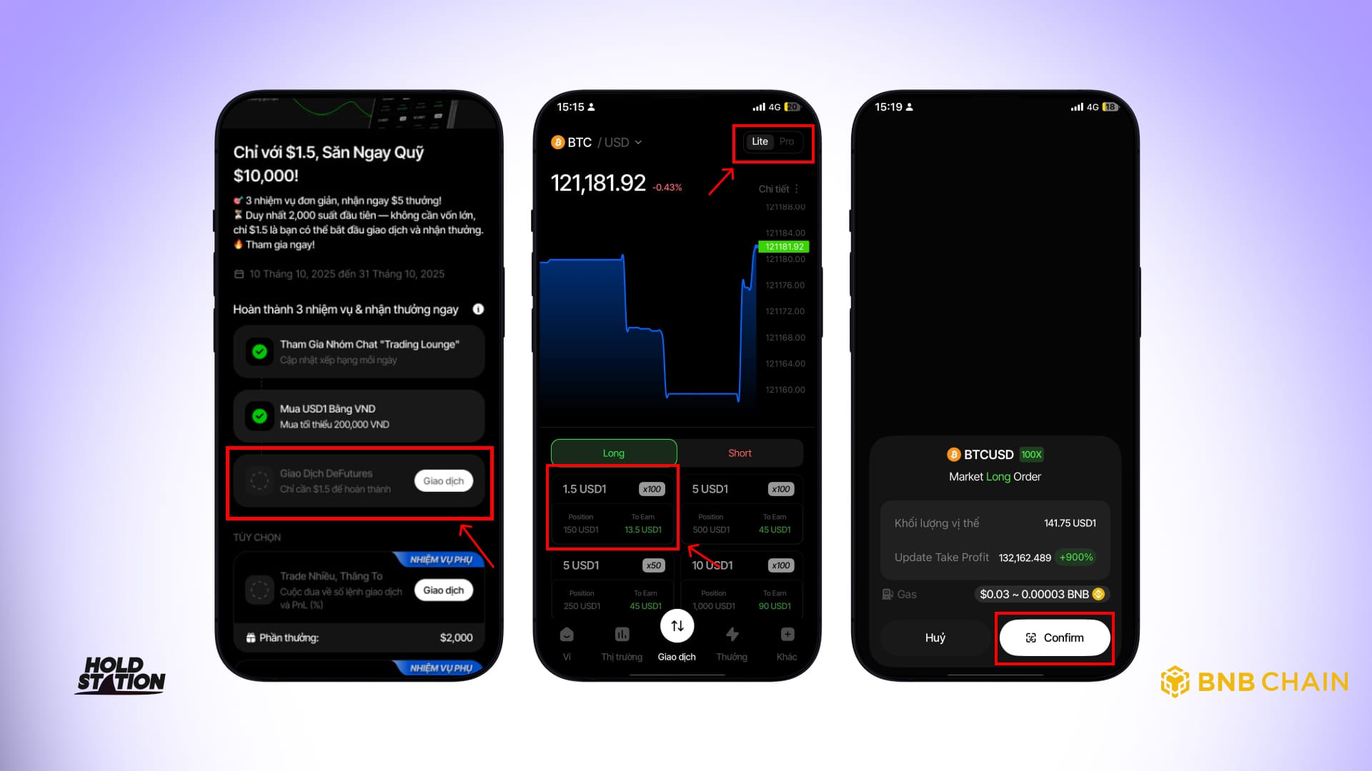 (4) Thực hiện 1 lệnh Holdstation DeFutures chỉ với $1.5