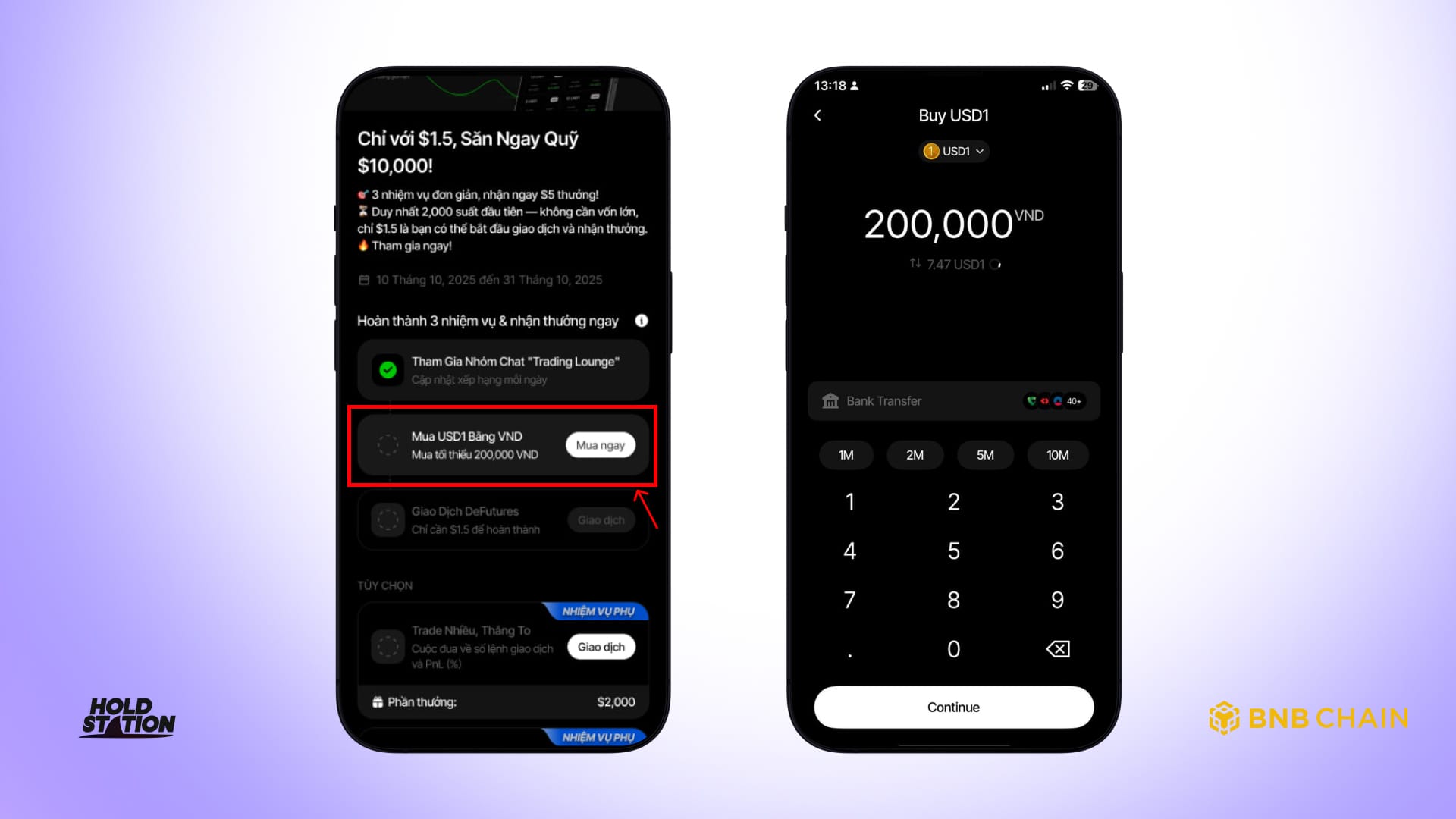 - Thực hiện mua Mua USD1 bằng VNĐ trực tiếp với Holdstation Pay